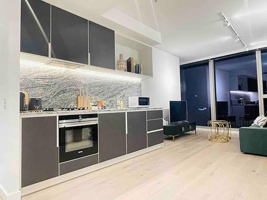 Photo: AirbnbSee more photosThis upscale apartment complex is located on the waterfront of Docklands, featuring stunning scenic sights of the Melbourne Star Observation Wheel. There’s also a tram station nearby, meaning easy access to public transit. Soak up the sunshine on the huge balcony outside. Inside, the kitchen is outfitted with everything needed to make a tasty meal. Rest in the main bedroom, which offers a comfy Queen sized bed and a built-in, full-length mirrored wardrobe for storing luggage. Get cozy on the living room couch, which boasts views of the city skyline and a large, flat-screen TV. Design elements of cool blues and bright whites make this space feel clean and cheerful.
