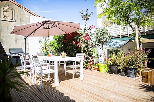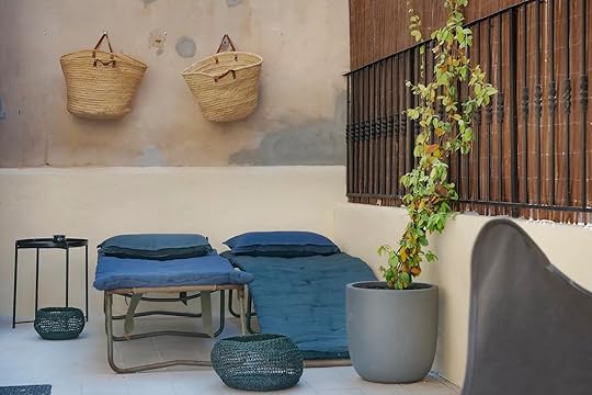 There is a pull out couch in the living area which bumps up the guest capacity to four, but it’s really best suited for one or two guests (or those traveling with young children.) Outside you’ll find a paved patio with trendy navy-blue sun loungers, a green wall, and wicker shopping baskets which can be used to carry back your fresh baguette and madeleines from the nearby boulangerie.