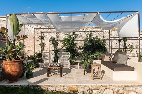 Fragrant orchards and cactus gardens surround the renovated elegant manor house, its outbuildings, and its courtyard. Its interior features lofty vaulted ceilings, floors in pale honey-colored local stone, and brick archways that create a cool atmosphere on hot summer days. The design of the estate is a mix of old and new, with Italian artwork and vintage furniture. Set between the original manor house, the gate tower, and the former farm cottages, each of the accommodations have been inspired by Sicilian writers, artists, literature, and films.
