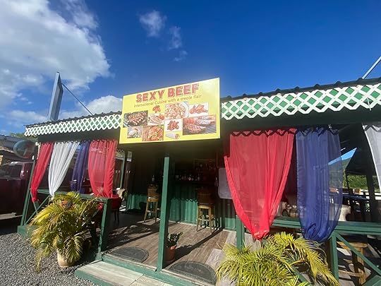 Sexy Beef, another beloved lolo, comes from the owner’s nickname for his girlfriend. Still, the name lives up to its expectations. The restaurant serves mouthwatering international cuisine with a creole flair and is known around the island for the satay. Satay is traditionally a dish of marinated, skewered. and grilled meat served with a spicy peanut sauce. It’s popular in Southeast Asia, especially in Indonesia, Malaysia, and Singapore. My plate came with mini skewers of chicken, pork, and beef, as well as a shrimp skewer covered in a spicy sauce — plus a side of rice and peas, steamed vegetables, and plantains. The sauces on the side, including the peanut sauce, took this already mouthwatering local favorite to the next level.