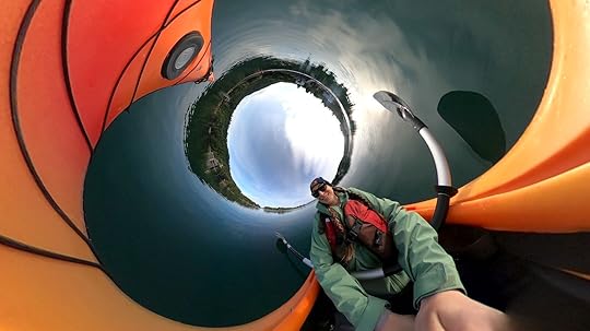 I got amazing GoPro 360 MAX photos without much effort. I took this one simply by holding a selfie stick above my head in the center of my campsite. And the result makes it look like we pitched our tent on the top of the world. Photo: Suzie Dundas