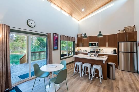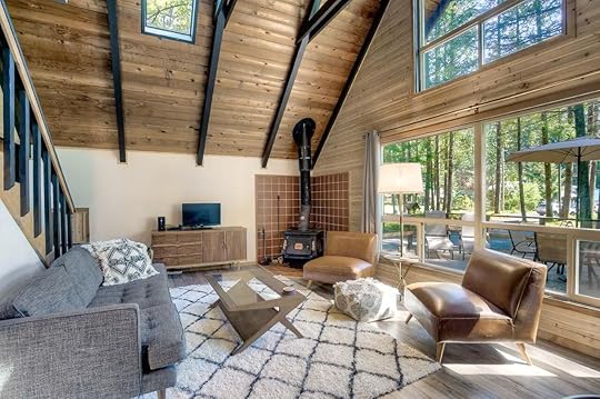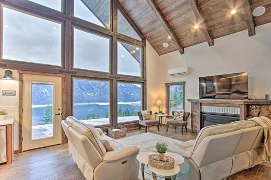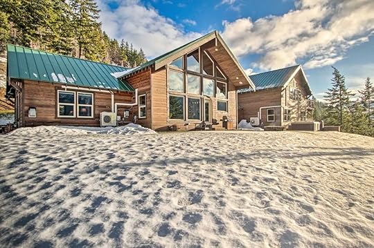 This 2000-square-foot cabin has enormous windows in every room, modern furnishings, heated floors, and more resort-like amenities. The cabin is on Tumalo Lake and 12 miles west of downtown Bend and near Mount Bachelor, and there are many opportunities nearby to go skiing, snowshoeing, hiking, and mountain biking.