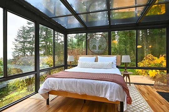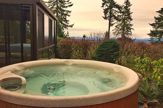 This luxurious getaway is the perfect home base to escape to near Eugene, Oregon. The space has all the privacy you need and features an atrium room and a small deck with a hot tub with views.