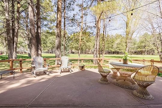 This A-Frame cabin is located on the 13th fairway of the Pinetop Lakes Golf Course. The charming home gives guests beautiful views of the nature surrounding them, and the cabin features a warm living room with large windows and a kitchen area. There is an outside seating area with a fire pit, and you can watch golfers play.