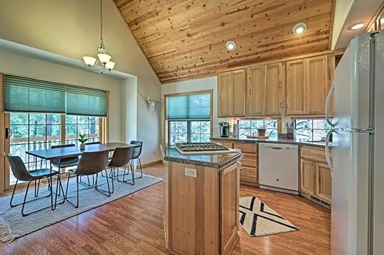 This wooded retreat is 10 miles outside downtown Flagstaff and near popular attractions. The modern cabin features modern finishings and has room for the whole family. The cabin has a covered patio with rocking chairs and a back deck perfect for relaxing and winding down for the day. The space is near Walnut Canyon National Monument, Lowell Observatory, and Arizona Snowbowl and is only a day’s trip away from the Grand Canyon.