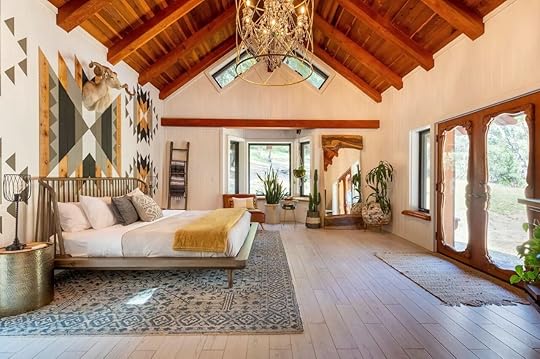 Bring your friends to this groovy bohemian cabin for a quick getaway. The spacious abode features many amenities to keep everyone occupied and relaxed, like the large front porch with multiple seating areas, a bocce ball court, other yard games, swings, hammocks, and a cowboy cauldron. The cabin overlooks a seasonal creek and is near beautiful hiking trails.