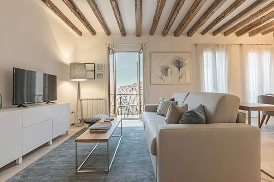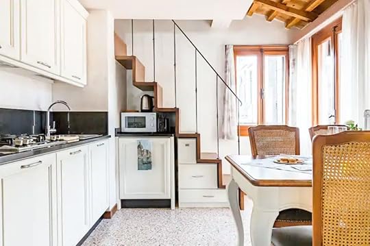 This Airbnb is the perfect space for your Venice getaway. The apartment is located in the Rialto Market, only a few minutes from San Marco, and features a spacious living room and a fully equipped kitchen area. In the living room, you can see a glimpse of the beautiful Grand Canal.