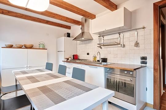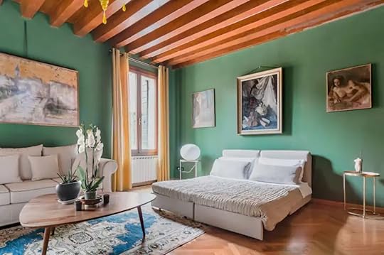 Relax in this contemporary Venice Airbnb apartment and take in the green interior and the wood of the parquet and ceiling beams. This stylish apartment features a spacious living room, a fully equipped kitchen and dining area, and a cozy bedroom. The apartment is centrally located near the most historical and famous places, such as the Teatro la Fenice, Piazza San Marco, and the Rialto Bridge.