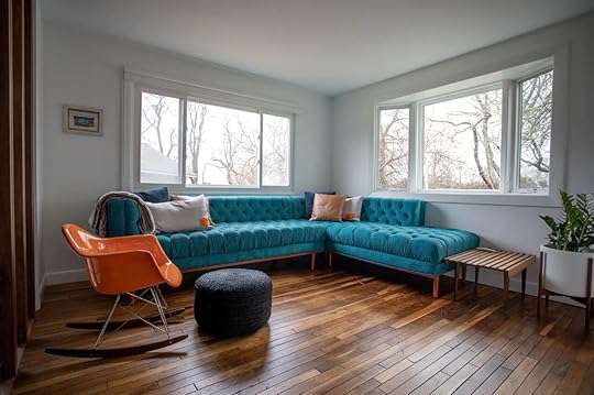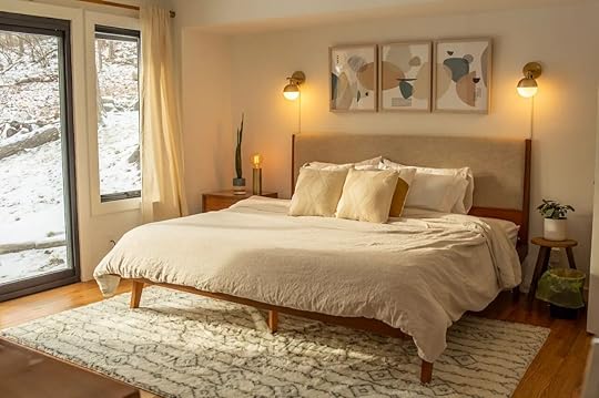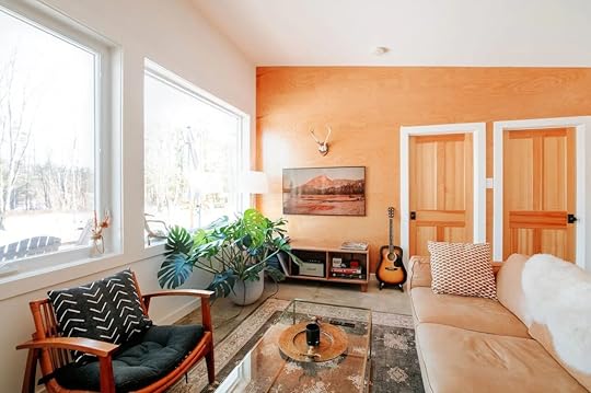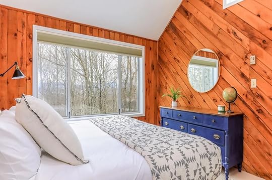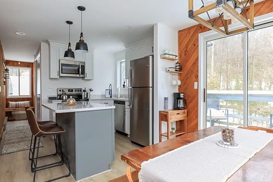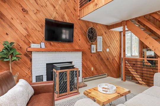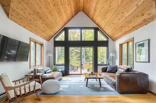 Escape to this stylish cabin for a simple Vermont getaway. This stylish Airbnb features modern amenities like a newly renovated kitchen, a spacious living room with floor-to-ceiling windows, and a cozy fireplace. The home has a large backyard area perfect for cool nights where you can sit by the fire pit and enjoy the cool air.