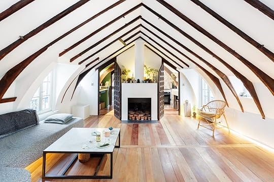 This apartment in the second arrondissement is a unique offering. With timber beams running along a magnificent cathedral ceiling, this Paris Airbnb makes you feel like you’re in the belly of a ship. The fireplace and the furniture all work toward making guests feel cozy and at home. The kitchen is a work of art in black and while and the bathroom is a beautiful mix of colors. The apartment is within walking distance from the Louvre, and the Palais Royal.