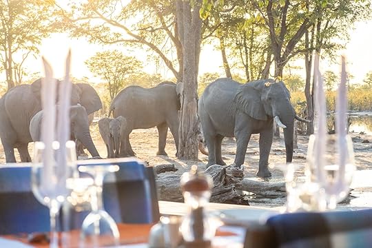 “It’s time to head to your evening’s accommodation under the stars,” he said in a loud whisper to avoid disturbing the elephants. “And I’m sure you’d hate to miss sunset drinks in the most idyllic place imaginable.”