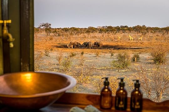 A fourth structure serves as the gathering point for meals and drinks. A small team is on hand to greet guests on arrival and serve a selection of beverages, which pair remarkably well with the view of the sun setting behind the small pan. And as if to ensure Max’s assertion that this may be a contender for most idyllic African sundowners, a small herd of elephants appeared in the twilight to take in a sunset drink of their own.