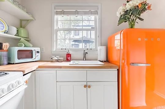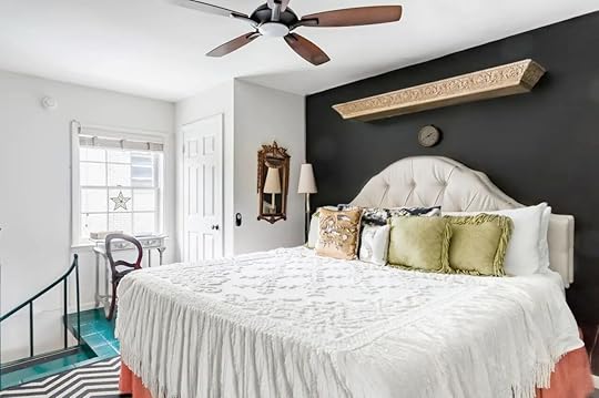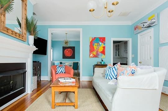 Stay at this vibrant Airbnb in Savannah, a historic carriage home in Savannah’s Historic District takes guests into a colorful retro world with its coral armchair, vibrant teal living room, and retro-style kitchen with a bright orange refrigerator. Also, enjoy the beautiful backyard area, relax on the outdoor furniture, grill under the stars, or sit out and enjoy a glass of wine.