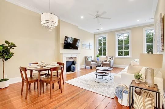 Enjoy this townhouse Airbnb for your next Savannah vacation. This spacious townhouse features a large and open living room with large windows bringing in beautiful views, natural lighting, and a fireplace to keep you warm if you get cold. There is a fully equipped kitchen if you would rather whip up a meal than be out for the night, and if you have had a long night on the town or an eventful day, come back home and relax on the comfortable porch. Hang out at the restaurants in Starland and Midtown districts close by, or take in the quiet Barnard street, walking around and viewing its historic features.