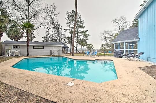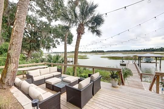 Experience the beauty of Savannah at this spacious riverfront home. This home features a fully equipped kitchen, spacious living room for entertaining, board games, four bedrooms, and an outdoor living area with a dock, private pool, screened porch, firepit, dining area, grill, and a screened-in gazebo.