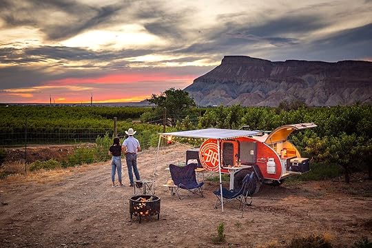 On arrival at Talbott Farms, guests will be welcomed with a bushel of homegrown peaches and a six-pack of Palisade Peach Wheat beer that they can keep cool in the fridge of their Escapod camper. The glampy peach pod also comes equipped with a gas firepit, two-burner stove, kitchen sink, basic cookware, solar-powered chargers, and a queen-sized mattress pad that can comfortably sleep two adults or a family of four with small children — all you need to bring are sleeping bags.