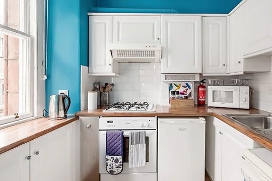 This vibrant and colorful flat could be your new home away from home while in Scotland. This colorful Edinburgh Airbnb has stunning views from the large windows in the spacious living room, a fully equipped kitchen with a breakfast table and dining area, and a study with a queen-sized bed.