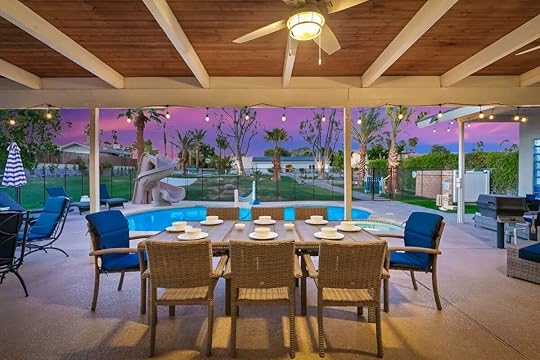 There’s no need to even leave the house when you stay at Monte Vista. Onsite is a pickleball court, game room, and plenty of space to lounge in the sun. Cook and eat dinner outside by the pool, and afterward, watch the sunset in glows of pink and purple over the palms. A late-night waterslide session is in order, of course, as is time reserved for hammock lounging. This Airbnb Palm Springs masterpiece is the perfect place for a large bachelorette party or large group looking to get the most out of their host home.
