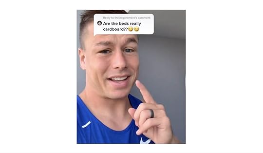Some viewers found out the athletes are sleeping on beds with cardboard frames. Melphy decided to put some rest to rumors that the beds are made out of cardboard to keep people from having sex. Even though he says the rumors are false, he did break his frame in the process so, careful Melphy.