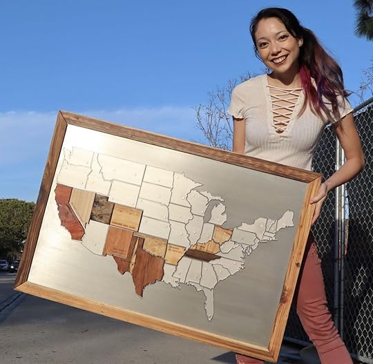 Foxlin drove across the country — from Cleveland, Ohio, to Los Angeles, California — visiting a sawmill in every state she visited and making a map of the local wood she collected on her way. She posted pictures of her experience, and the map, on Reddit and answered questions from Redditors about the trip. She also released a YouTube video documenting her travels and highlights from her road trip.