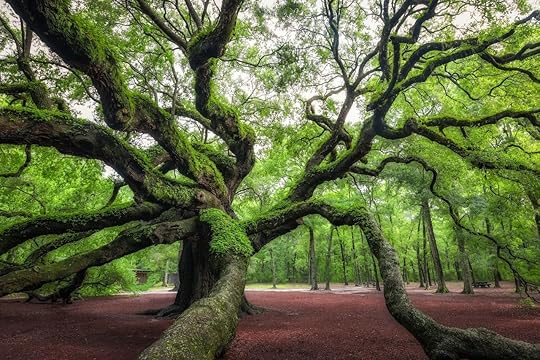 The famous angel oak is estimated to be between 300 and 400 years old. It’s growing just outside of Charleston, South Carolina, in the Angel Oak Park on Johns Island. Angel oak is considered one of the oldest living oak trees east of the Mississippi River. Forty-thousand visitors come to the park each year to see this magnificent 65-foot-tall tree.