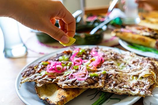 We started in Oaxaca City at a hotel near Mercado 20 de Noviembre. Days were quickly filled with foods from restaurants and street vendors alike. Plate after plate of mole, chapulines scooped from big baskets, and tlayudas all kept us more than stuffed between successive stops in every mezcaleria we passed. Our food highlight came, fitfully, on Thanksgiving day through an Airbnb Experience at the home of Mimi Lopez Hernandez. After a brief talk around the dinner table with 10 other guests about Mimi’s standing as a groundbreaking woman chef in Oaxaca, we were put to work to make our day’s feast using Mimi’s traditional recipes. We made fresh salsas, ground nixtamalized corn into masa on a large molcajete, and cooked tortillas on a comal over an open fire. Three different types of mole were made at once, with people moving between each to see how it was done and get tips from Mimi. It was a full day of cooking interspersed with sips of Mimi’s mezcal and gentle chiding about how my wife and I needed to have kids already. We quickly bonded with Mimi, her son Charlie (who translated when our broken Spanish failed us), and the other guests.