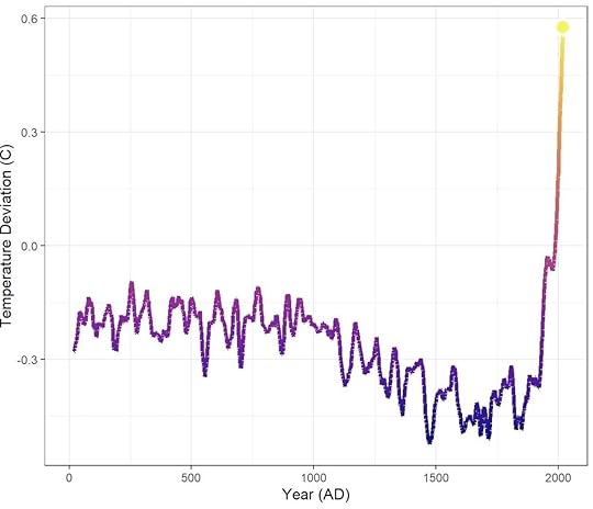 [OC] Two thousand years of global temperatures in twenty seconds from r/dataisbeautiful