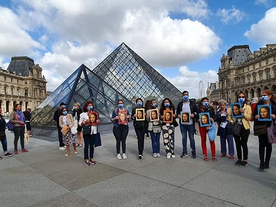 Dozens of Parisian tour guides, wearing face masks and holding signs with photos of the Mona Lisa, gathered outside the Louvre to protest the lack of relief funds allocated to out-of-work tour guides.