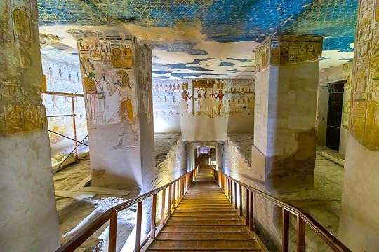 Ramses IV ruled Egypt from 1156 to 1150 BCE. His tomb consists of a single, long hallway that seems to stretch on infinitely before coming to a stop at an antechamber that leads into the burial chamber. While overall it’s pretty simple, the colorful hieroglyphics covering every inch of the walls are what bring it to life. Besides the typical veneration of gods, there are scenes from the Litany of Ra and books of Caverns, the Dead, Gates, and the Night — all funerary texts, commonly displayed in tombs — such as how the dead will be judged and what people can expect in death, as well as scenes from the Ramses IV’s life and his journey through the underworld.