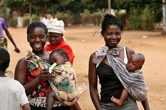Mozambican mothers traditionally carry their infants in a piece of printed cotton material called a capulana. Capulanas are versatile pieces of cloth that can be used as a skirt, a veil, and/or a shawl to carry belongings and as a sling to carry babies. Said to have originated in India and circulated to Africa via trade routes, capulanas are common gifts for new mothers and come in joyful patterns and colors.