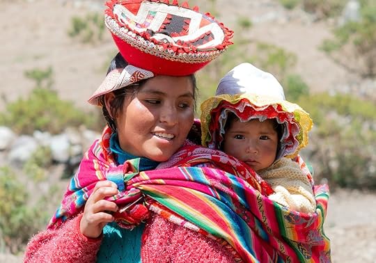 Andean mothers wear a manta. These thick, woolen, blanketlike fabrics are beautifully woven textiles. They can be made from sheep, alpaca, or llama wool and are tied around the neck and shoulders.