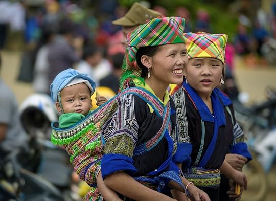 One of the most ornate examples of baby carriers found in Asia is the one crafted by the Hmong people, an ethnic group living in Laos, Thailand, Vietnam, Myanmar, and southwestern China. Made of material decorated by intricate embroidery, appliqué, and reverse appliqué, Hmong baby carriers consist of a large rectangle of vibrant fabric on which two straps are sewn at the top. Baby is wrapped by the cloth on the mom’s back and tightly secured by the straps that weave around the mom’s arms, below the baby’s behind, and around the mom’s waist.
