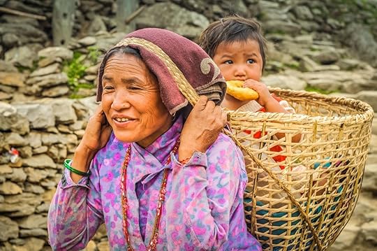 While more cumbersome and heavier, baskets are one of the many ways mothers around the world carry their little ones. In Nepal, the practice of carrying infants in wicker baskets strapped to the mom’s head is very common. The shapes and sizes of baskets vary, from very common and traditional conical ones called doko to rectangular ones, but they all do the job and free up the hands of busy mothers. When not used for infants, the baskets can carry crops, wood, etc.