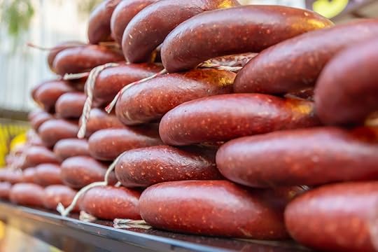 Sujuk: Spiced with cumin, salt, paprika, garlic, and red pepper, this sausage is known for its high fat content. Though the Turkish were the first to make sujuk around 1000 BCE, it’s since spread to the Balkans and the Middle East, and today it’s popular in countries like Lebanon, Bulgaria, and Kyrgyzstan. The meat is cured for at least six weeks, at which point it acquires a texture similar to salami and both a tangy and spicy flavor.