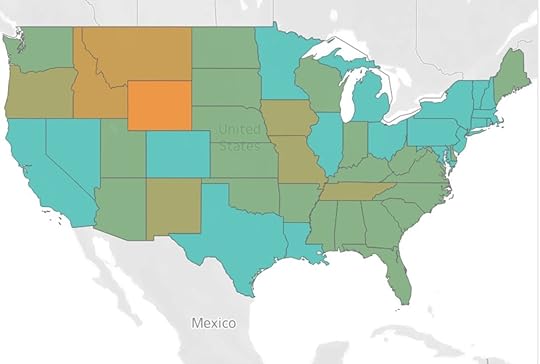 States where residents are excelling in social distancing are colored in green, while those needing improvement are colored orange.