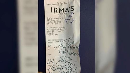 As bars and restaurants will likely struggle during the coronavirus shutdown, customers are stepping up to help their favorite local businesses. In Texas, one generous customer left a $9,400 tip at Irma’s Southwest in Houston, writing this note on the receipt: “Pay your guys over the next few weeks.” The tip was left by one of the restaurant’s regulars, who, according to the owner, had been dining there for 15 years.