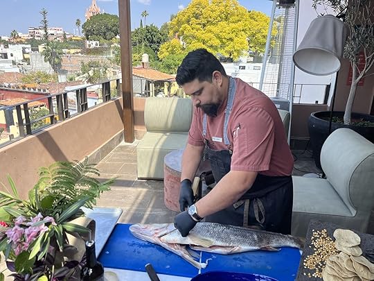 No hotel in San Miguel de Allende is better at connecting guests to cultural and culinary experiences. I arrived with a multi-generational party of three at the hotel’s rooftop restaurant, NOIA, for a cooking class.a high-end spot with a stunning view overlooking the city’s main cathedral, Parroquia de San Miguel Arcángel, from just south of the central plaza. We began by squashing garlic, onions, peppers, and more in a molcajete – a traditional mortar and pestle – to make a salsa. guided us through the proper process of grinding the ingredients, adding spice and salt to taste, and finishing with a salsa that looked almost as though it had gone through a blender. It tasted as good as it looked. My mouth burned from the habanero and jalapeno, the dominant flavors atop crisp fried corn tortillas.