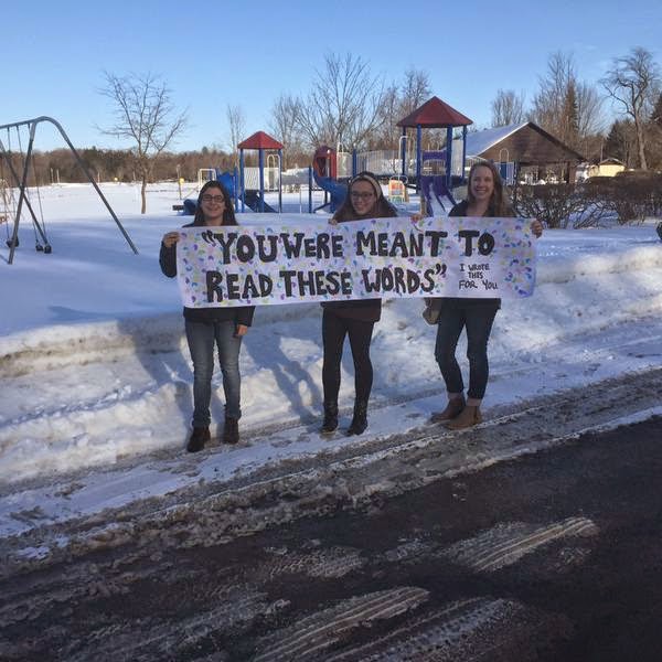 Who walked around with a giant banner in the snow, leaving balloons with the web address and phrases from the blog everywhere.