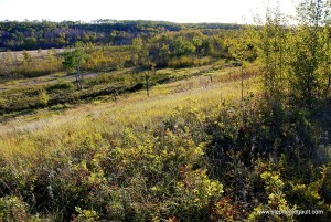 Photo taken from a grown-over riffle pit on Frenchman's Butte, looking toward the ground held by General Strange during that skirmish.