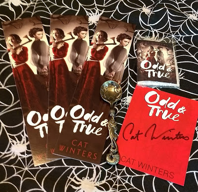 The pack includes three Odd & True bookmarks, a signed bookplate, a bag of monstrously marvelous Odd & True tea, and a whimsical teaspoon (the design of the spoon may vary from the one shown in the photo).