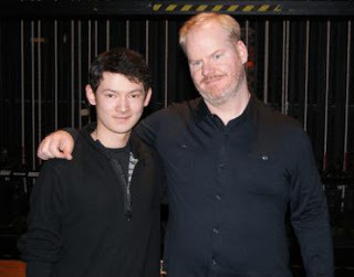 A.L. gives Jim an autographed copy of Bastion: Prequel To War after the comedian's show Sunday night in Williamsport, Pennsylvania. "Jim Gaffigan is BY FAR my favorite comedian!"