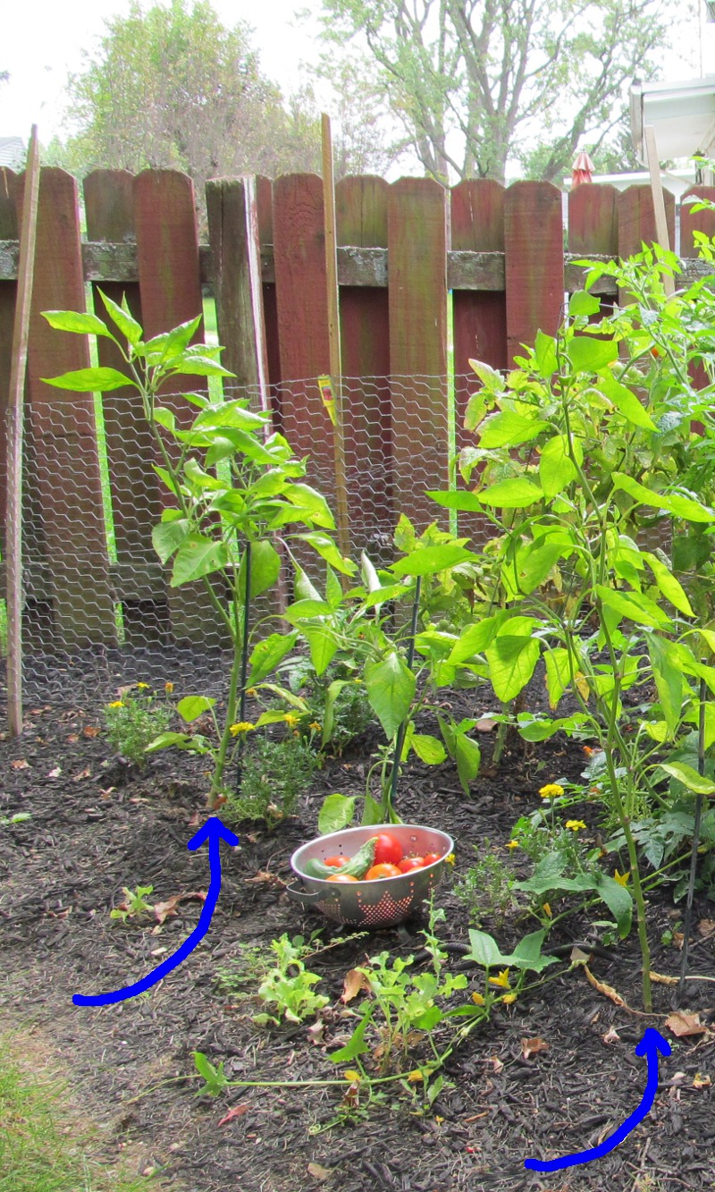 Here, see my pepper trees?Must have done something right this spring. These garden plants have flourished. They've all gotten real big, and some, like the tomatoes, have produced prolifically. Now if I could just figure out what I did different from before.