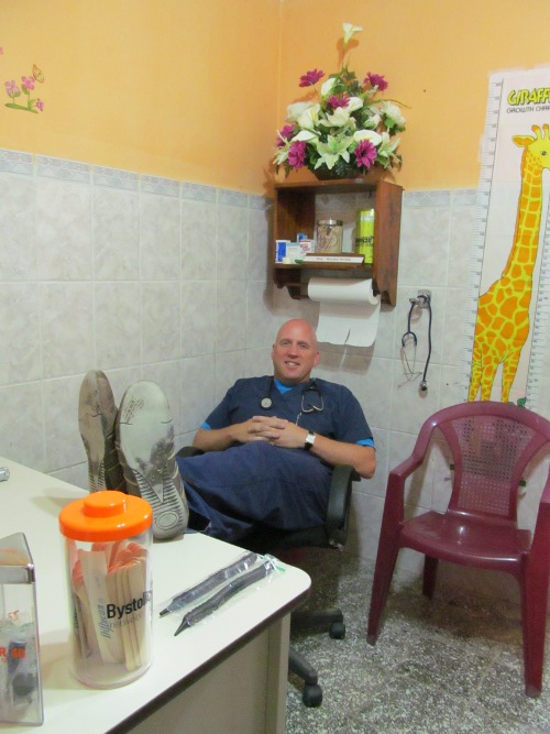 Doris snuck into the clinic and got some candid shots of Pastor Robb hard at work, and Pam and Alysia, who were apparently the ones really doing the work . . .