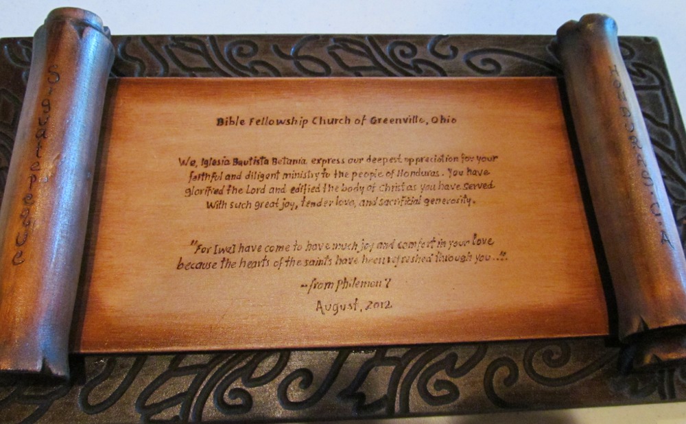 I was presented with a plaque to bring home to BFC, expressing Betania's and El Socorro's gratitude. It will have a favored spot, either in our auditorium or on the mission wall.