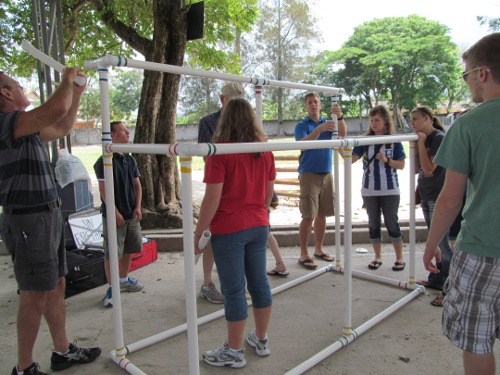 The rest of us had the evening off, and we played volley ball with the staff and friends of MEDA until it was too dark to see, and then set up lights and played some more. It was a beautiful evening, a very light, misting drizzle, with heat lightning flashing periodically.