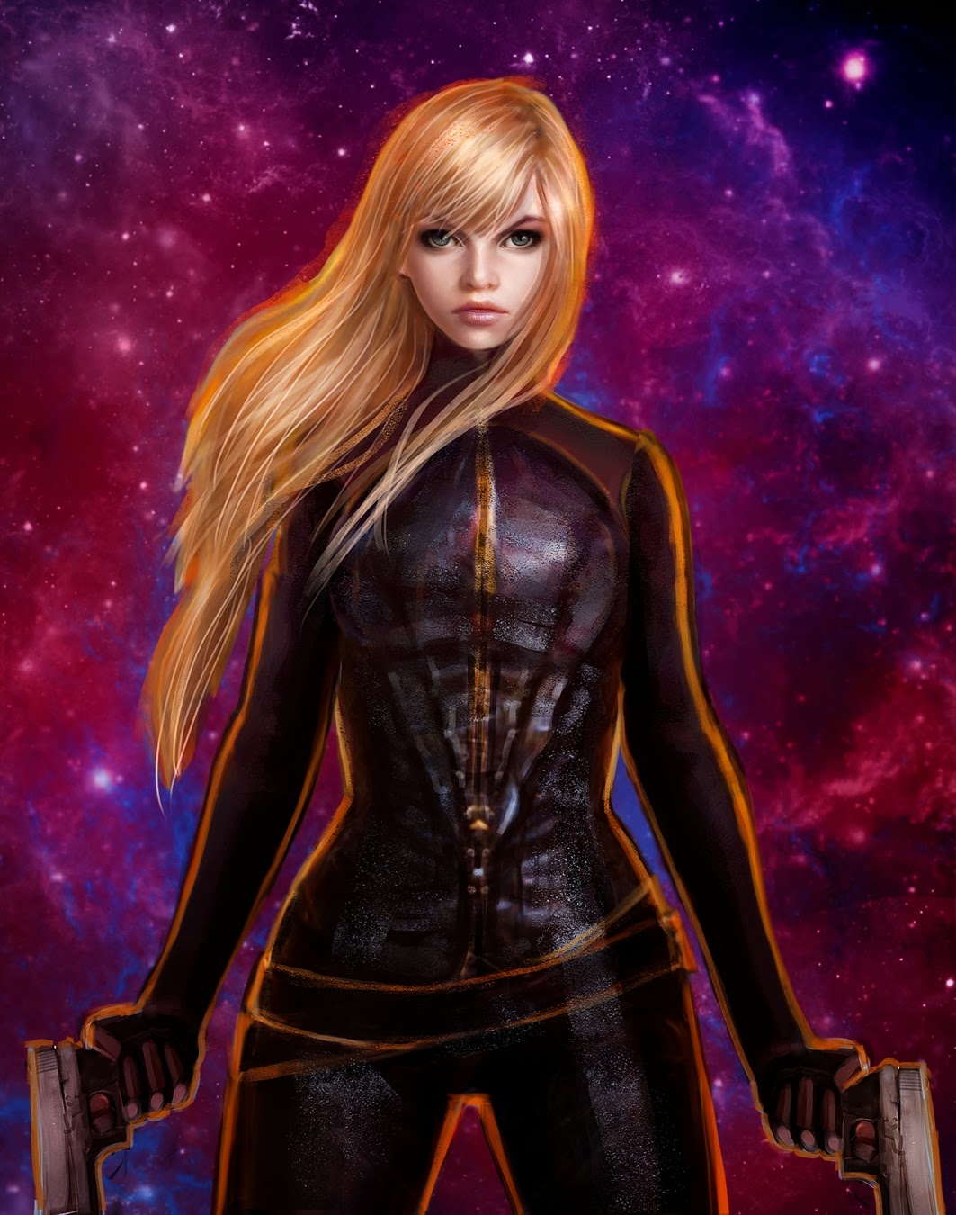 Pulling back the hood, she shook the rain from her short cloak. Water beaded on the fine black material of her sleek one-piece outfit, dripping down and pooling at her feet. Three men standing by the bar looked up, taking note of her entrance. Suko was in no mood. Casually, she lifted the cloak back over her shoulder to better reveal the large-caliber recoilless holstered to her thigh. The men turned back their ale, wisely choosing drink over any foolhardy attempts at flirtation.