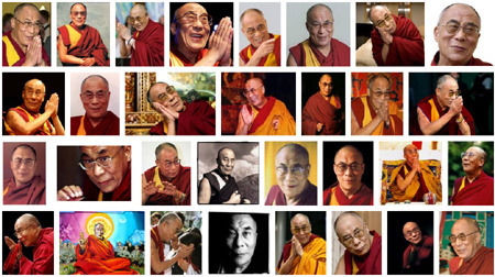 Serene? Check. Compassionate? Double check. Happy looking? Those lines didn't come from years of yelling at the cat to get off the furniture, for damn sure. Check out the images that come up if we search Google for pictures of His Holiness the 14th Dalai Lama: except for a couple of expressions of attentive interest, it's a complete smilefest. (Scroll down to the bottom to see the screen shot: I didn't want to put the picture at the top and prime you to choose the answer I'd thought of.)
