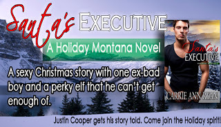 Santa’s Executive - Holiday, Montana Book 2 Justin Cooper wasn’t always the straight-laced Holiday Elementary School principal. In his youth, he broke all the rules and enjoyed being the bad Cooper brother. One Christmas Eve night he got a little too rowdy and things changed forever. Now the consequences of that fateful night have come back in full force and the myths of Christmas might be more real than he thought.Rina Brewer is one of Santa’s elves. Not the tiny cute little toy maker, but the sexy, petite, energy filled bombshell kind. She’s come to Holiday to aid Justin in his new role as Santa’s executive, but as soon as she sees the sexy ex-bad boy, she realizes the job may be more than she bargained for.As they work together to make this Christmas one to remember, an old foe has come to town to make sure that his holiday is the coldest yet.Warning: Contains a perky elf who dreams of something more, a Christmas myth who may be a baddie, and a sexy ex-bad boy who craves Christmas cookies…and a certain perky blonde.Find it On:Amazon | Barnes & Noble | ARe | KoboFind it in Print Here:eStore | Amazon | Barnes & Noble