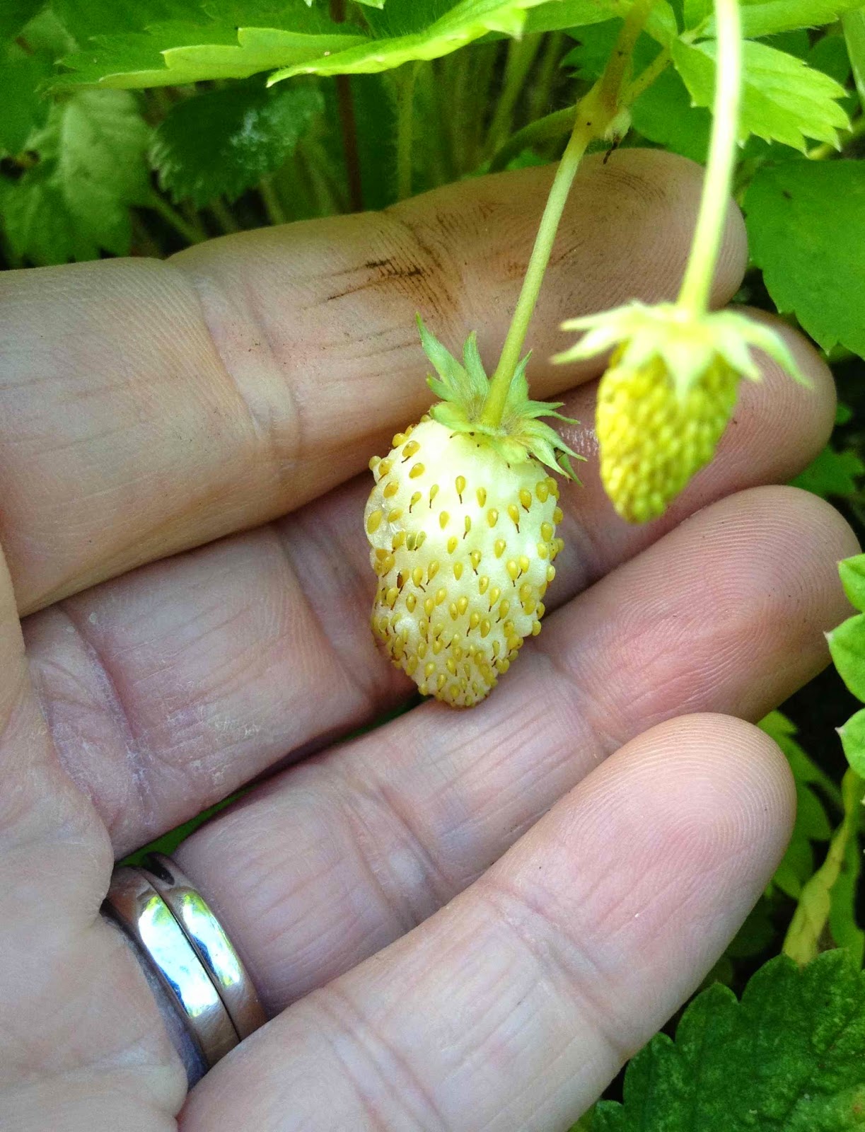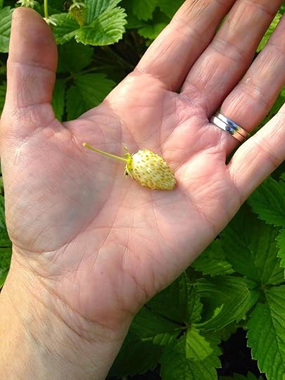 My first 'Pineapple' alpine strawberry - perfectlyripe. So tasty! Can't wait for more of these. I got