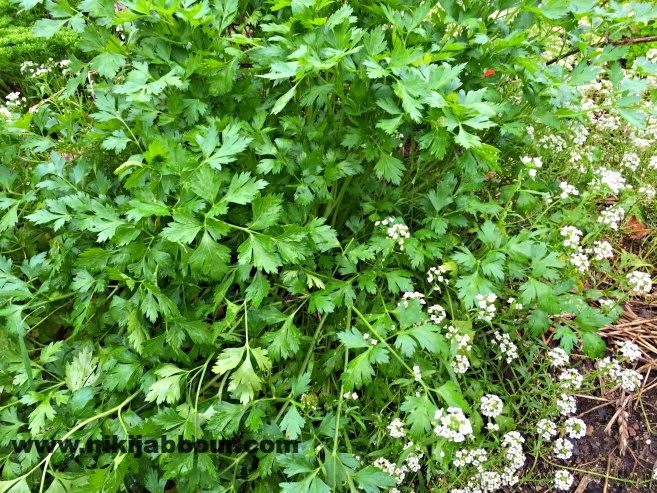 I love the combo of Italian parsley and sweet alyssum. Itoss handfuls of the chopped parsley in steamed potatoes,